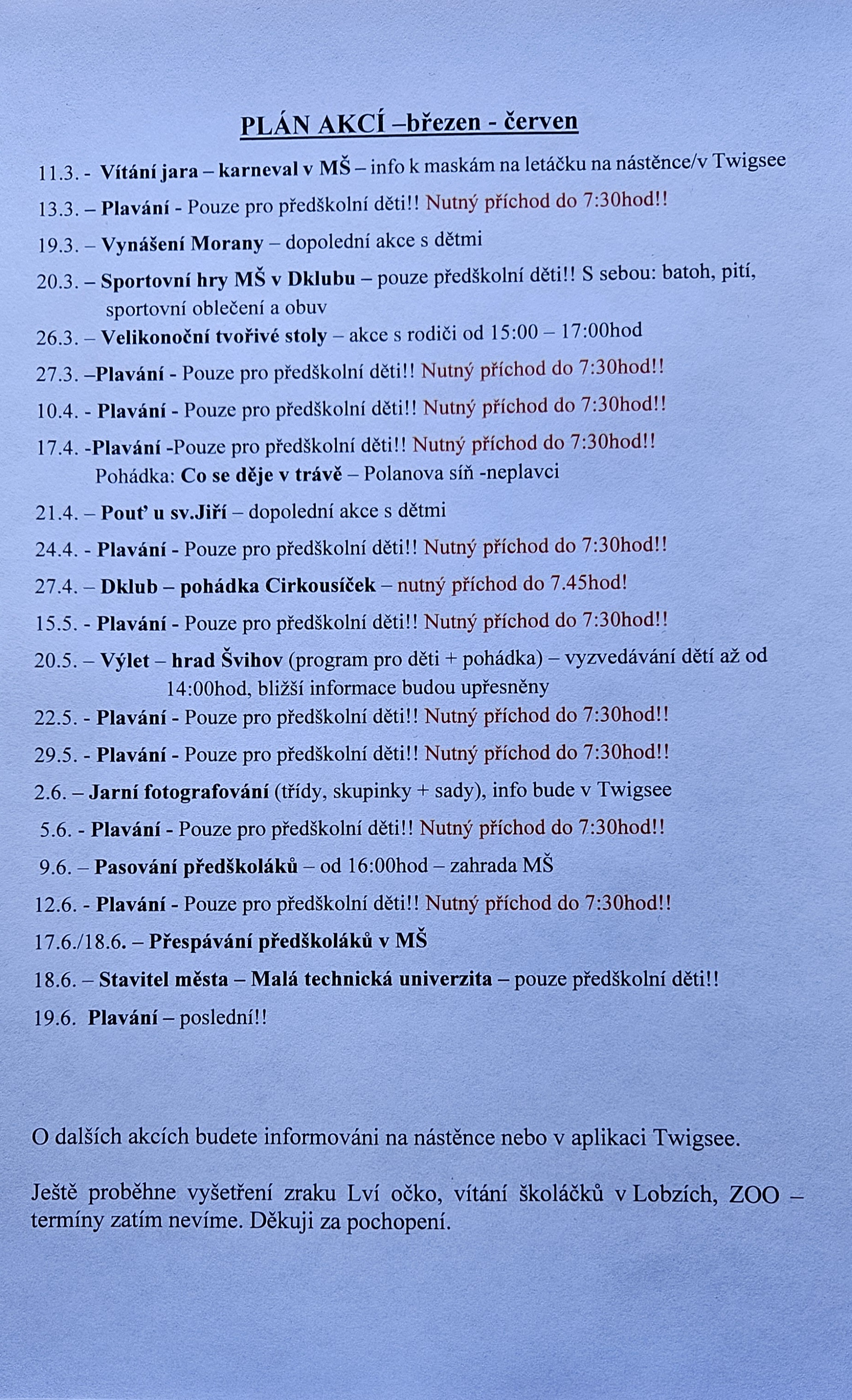 plán akcí březen - červen